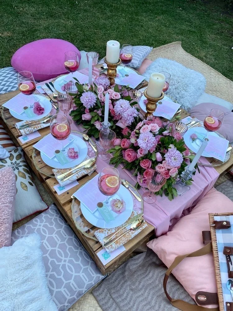 Elevate your outdoor experience with our luxurious picnic setup, crafted to combine elegance and comfort in a stunning outdoor setting.
